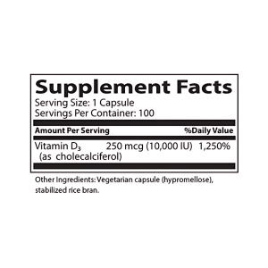 Vitamin D3 plays an integral role in calcium metabolism and bone health, as well as immunity. Vitamin D3, an essential and fat-soluble vitamin, can be derived from exposure to sunshine, and may be difficult to obtain from dietary sources alone. Recommended to be taken with a fat-containing meal, Vitamin D3 may help those in need of additional support.